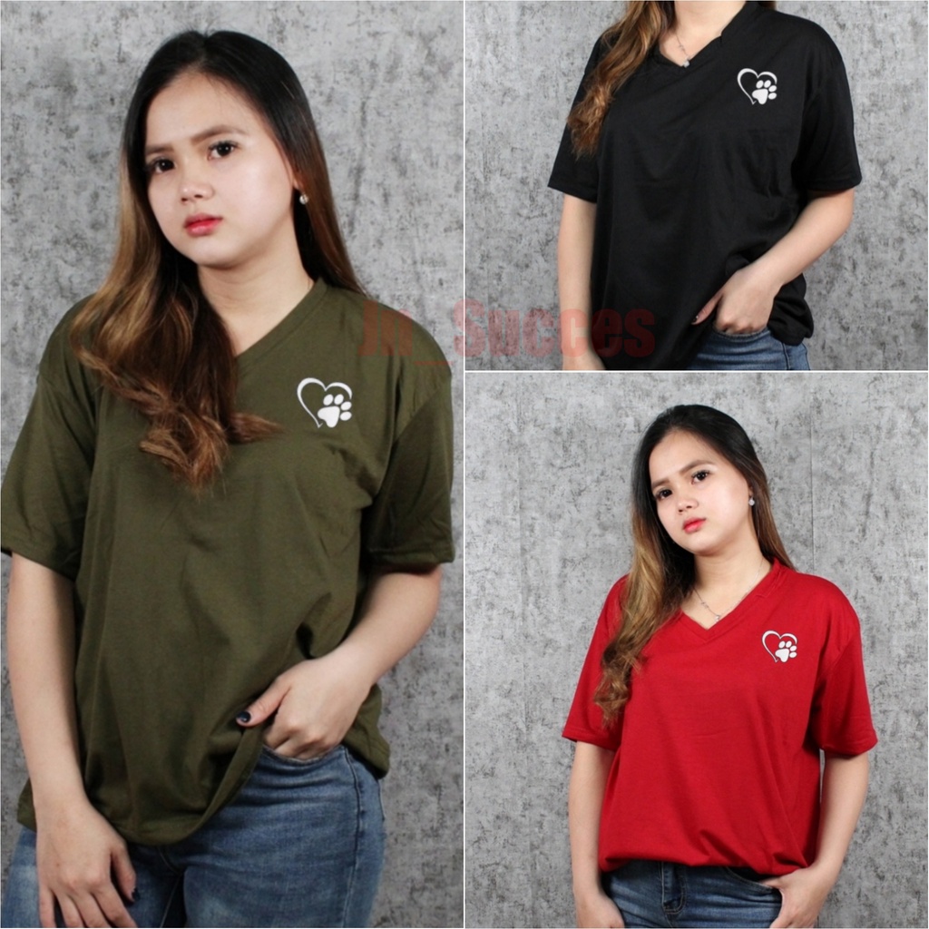 Kaos Vneck Wanita Love Feet / Kaos Vneck Jumbo / Kaos Vneck Wanita