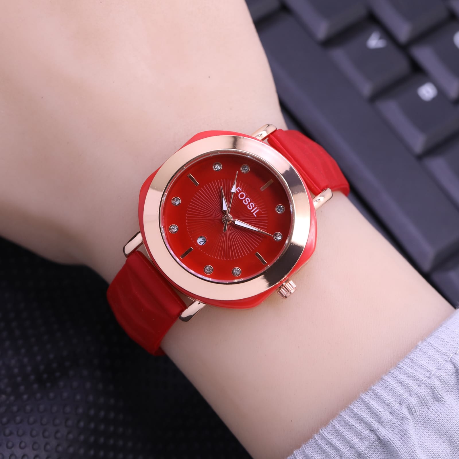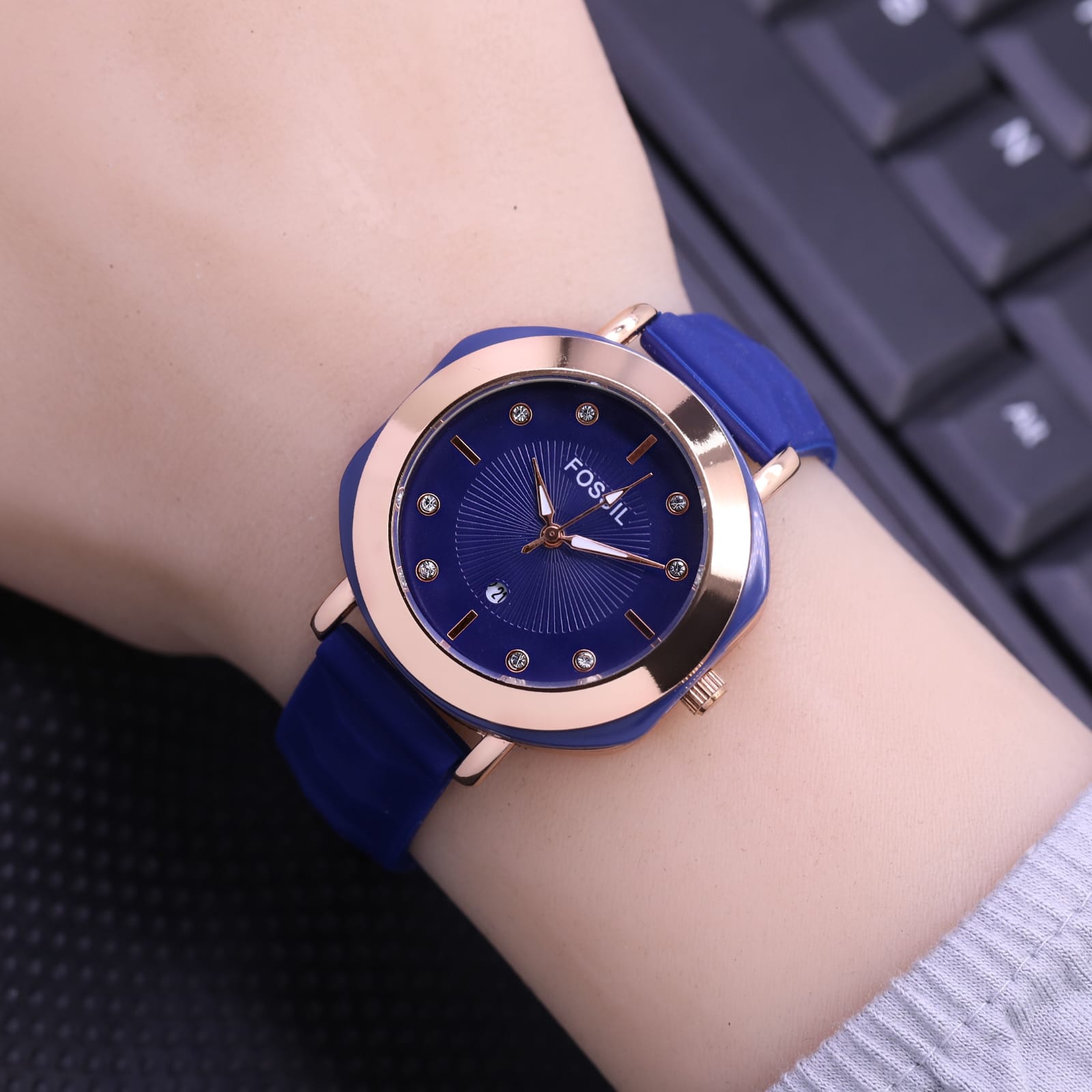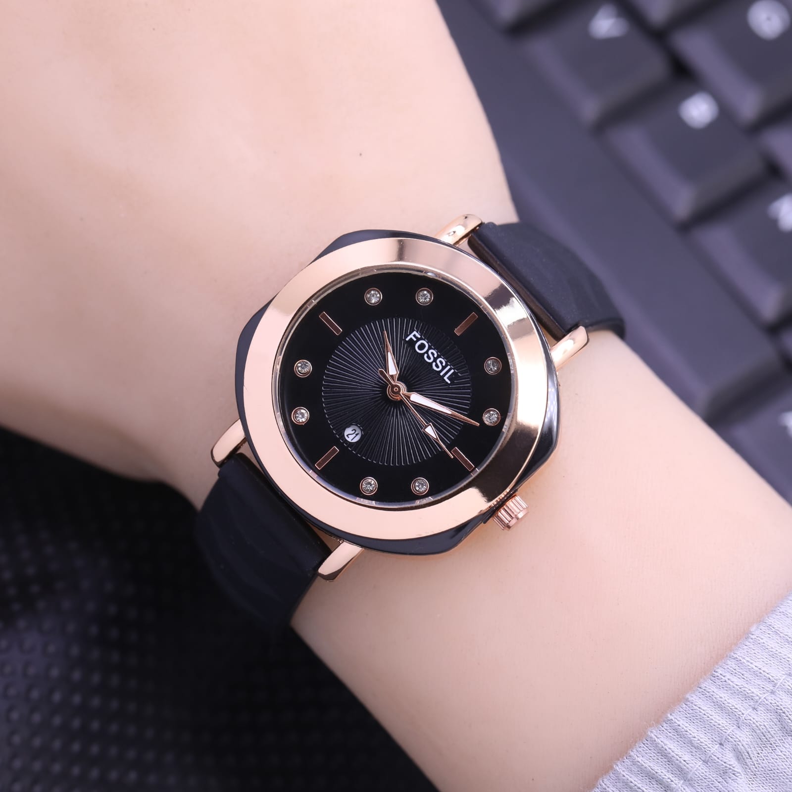 Promo - Jam Tangan Wanita Fossil F3658TL Tanggal Aktif Tali Rubber Free Box & Baterai