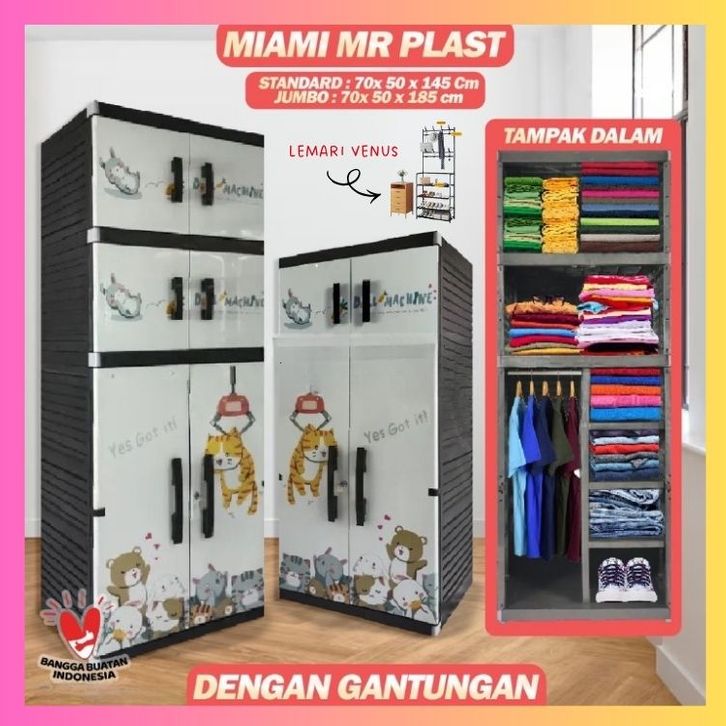 LEMARI JUMBO / LEMARI PLASTIK ANAK / LEMARI KARAKTER / LEMARI PLASTIK GANTUNG MIAMI ORLANDO MR PLAST PREMIUM ANIMAL
