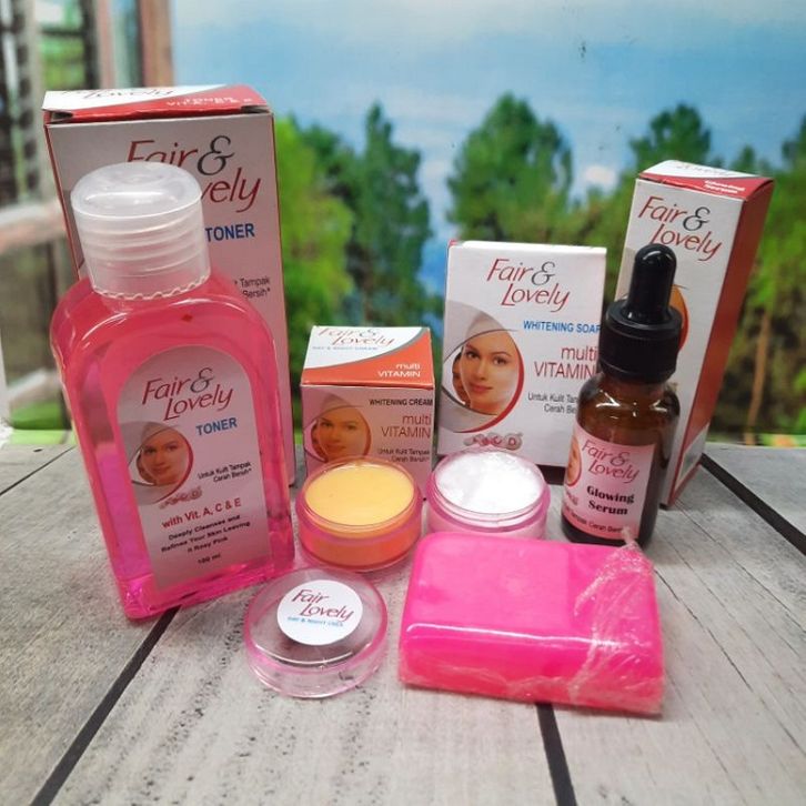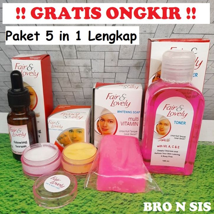 Paket Cream Fair & Lovely 5in1 Pemutih Wajah Glowing Sabun Muka, Toner, Serum, Cream Siang Malam Original Termurah *907