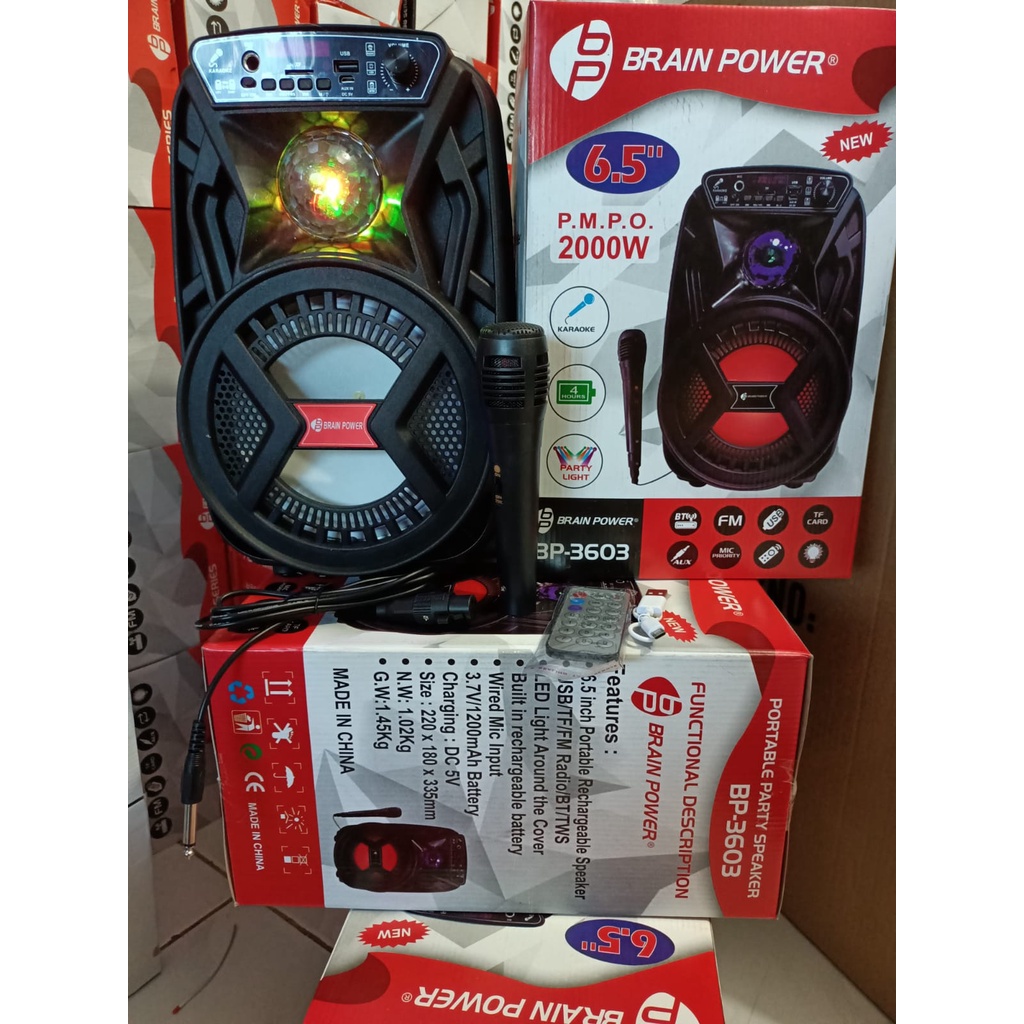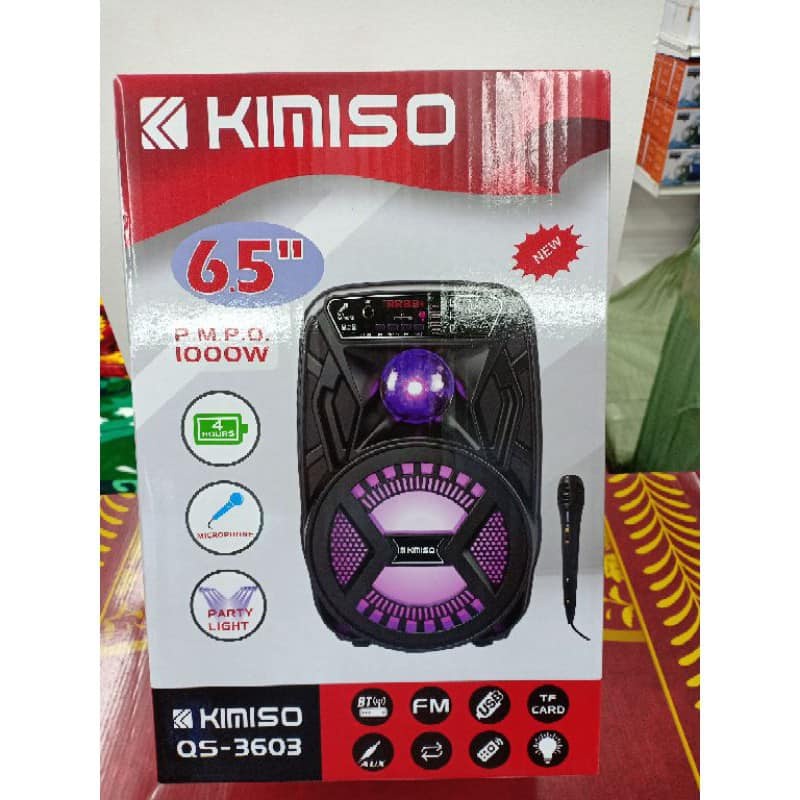 Speaker Bluetooth Portable KIMISO QS-3603 Bonus Microphone Speaker Karaoke 6.5 Inchi