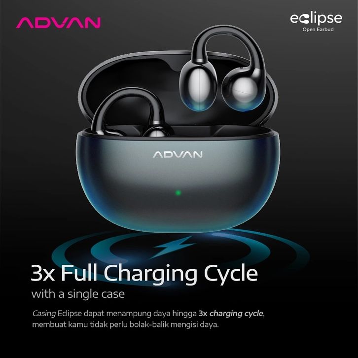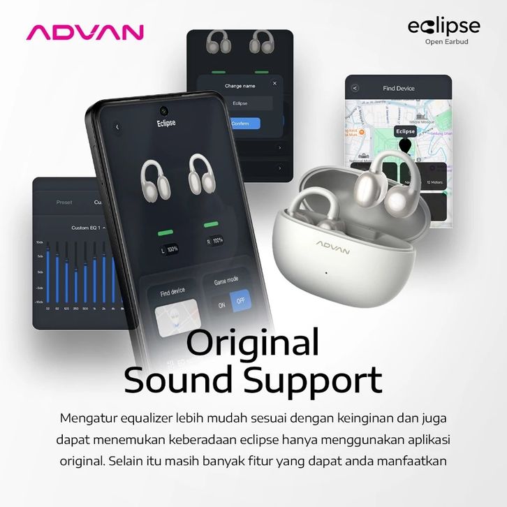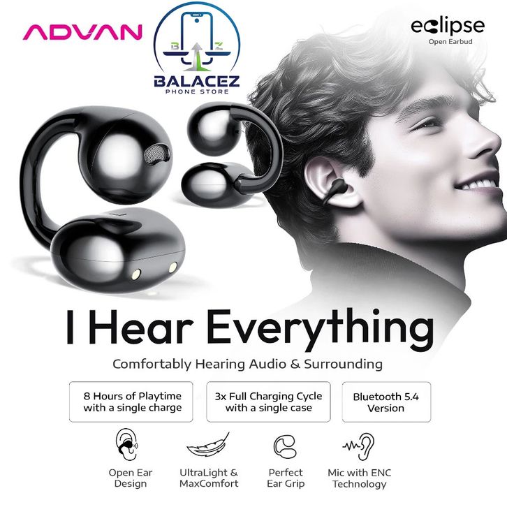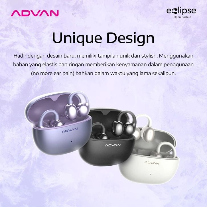 ADVAN Eclipse OWS / TWS Ear Clip Open Ear Bluetooth 5.4 Low Latency IPX4 Smart Touch Control Mic With ENC GARANSI RESMI
