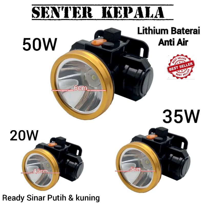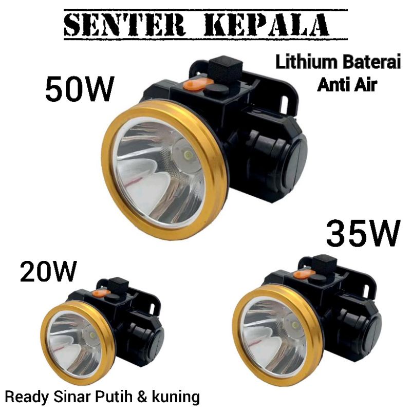 SENTER KEPALA 20W 35W 50W PUTIH / KUNING BODY KECIL SUPER TERANG HARGA GROSIR MURAH-