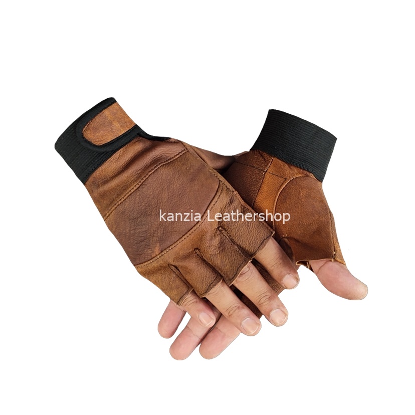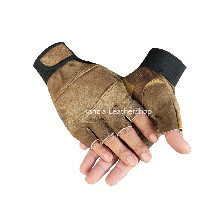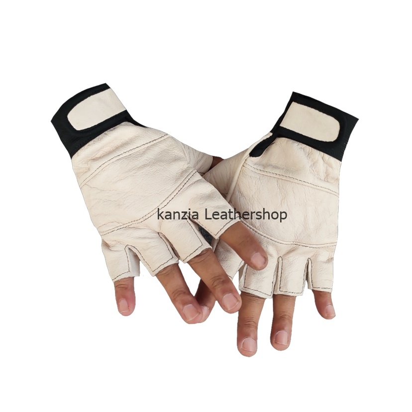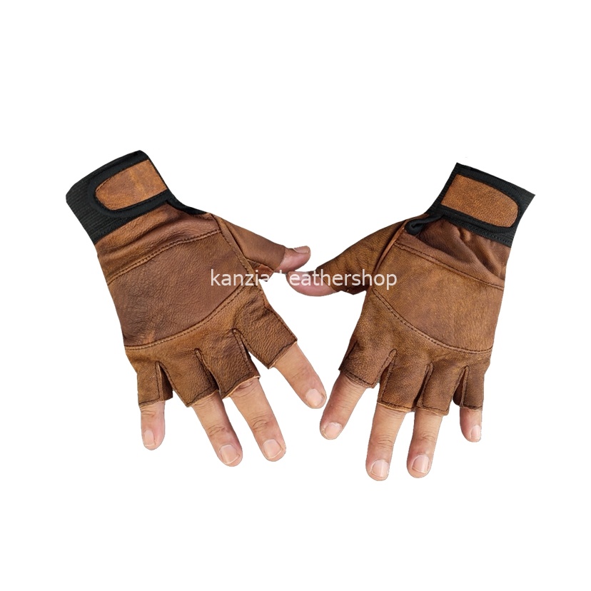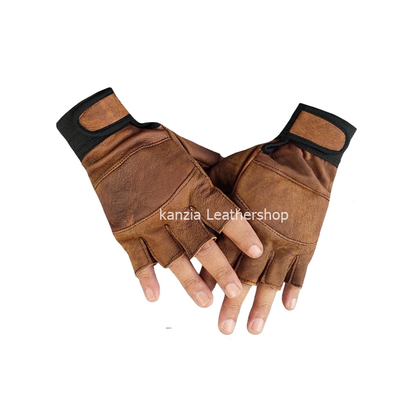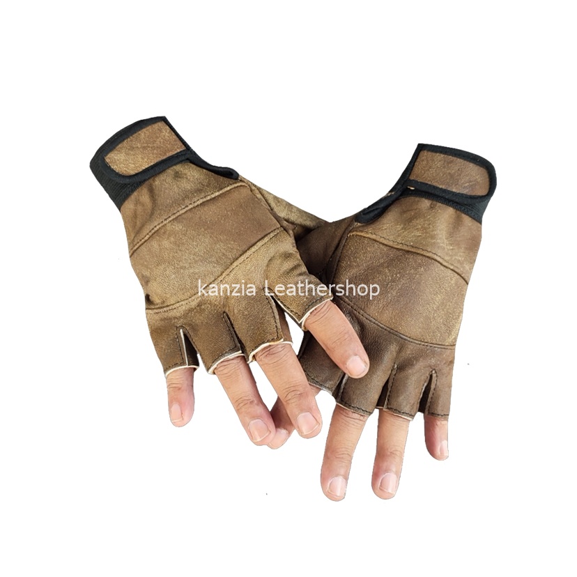 Sarung Tangan Kulit Kanzia leathershop Setengah jari Natural