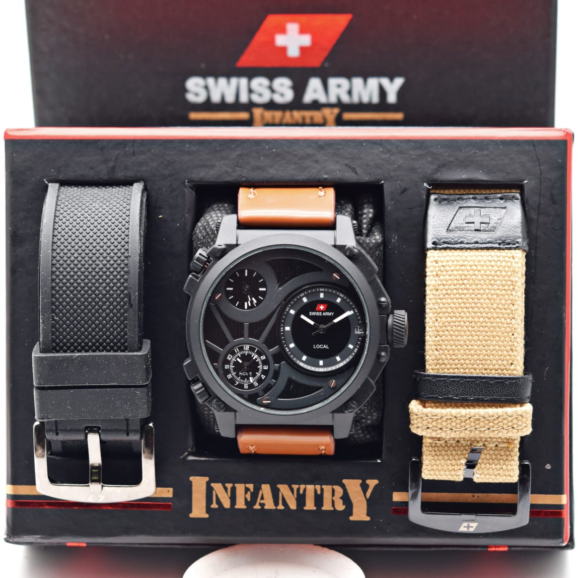 Grosiran Jam Tangan Swiss Army Infantry H2131 Paket Tanggal Aktif Tali Kulit - Jam Tangan Pria Include Box Original