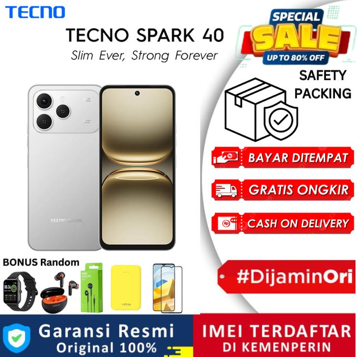 [Official Store✔] Tecno Spark 40 256GB 128GB 12GB 16GB EXTENDED RAM 5200mAh + 45W Flash Charge Garansi Resmi 12 Bulan