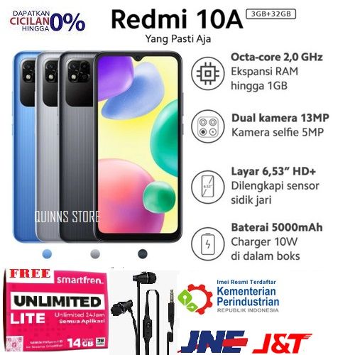 BEBAS CICILAN DP 0% !!!! HP XIAOMI REDMI 10A 4/64GB GARANSI RESMI