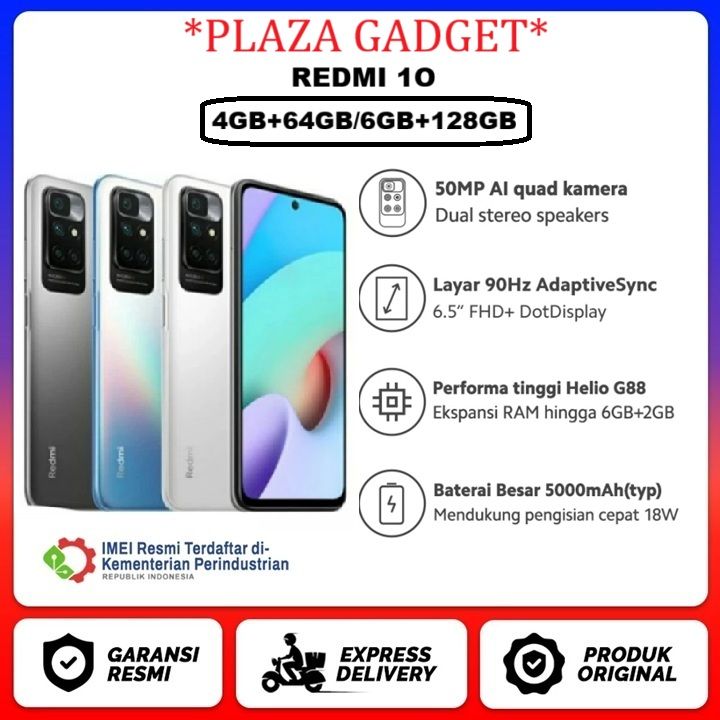 Xiaomi Redmi 10 2022 4/64GB+6/128GB Helio G88 50MP AI Quad Kamera Layar FHD+ 6,5" 90Hz 5000mAh GARANSI RESMI+BONUS