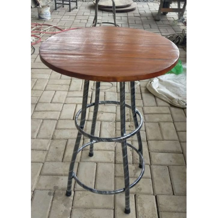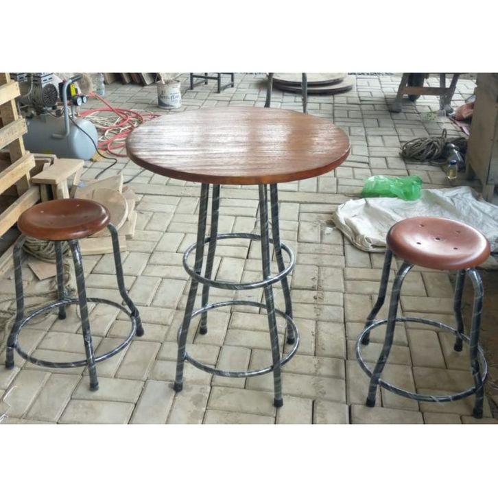 1 set meja cafe kaki besi pipa (D:50 cm T:75 cm) & 2 pcs kursi pipa tinggi 50 cm