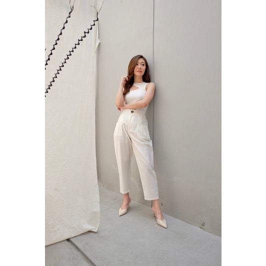 CELANA LINEN HIGHWAIST DOUBLE POCKET LINEN PANTS