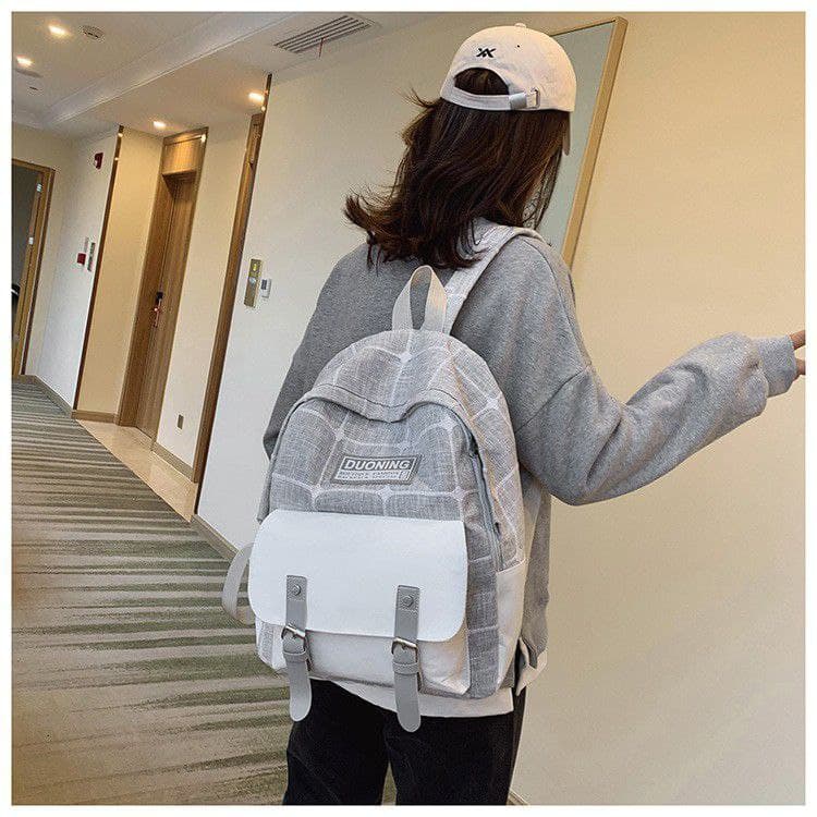 TAS RANSEL IMPORT BACKPACK KANVAS WANITA ABU RIALTA FASHION KULIAH