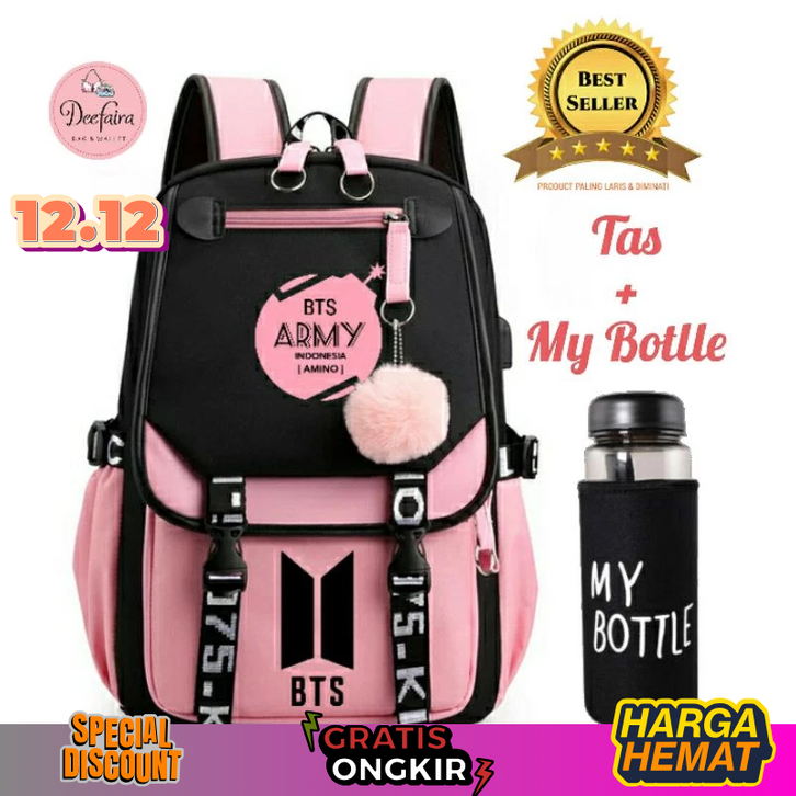 [TANPA DP] Tas Sekolah Anak Perempuan Kpop Set Pompom My Bottle TK SD SMP SMA Murah Alto Anti Air Smiggle Import Kuromi
