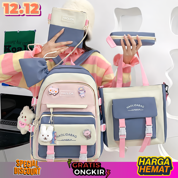 [TANPA DP] Tas Sekolah Anak Perempuan 5in1 Korean Style Ransel TK SD SMP SMA Murah Import Anti Air Smiggle Kuromi Alto