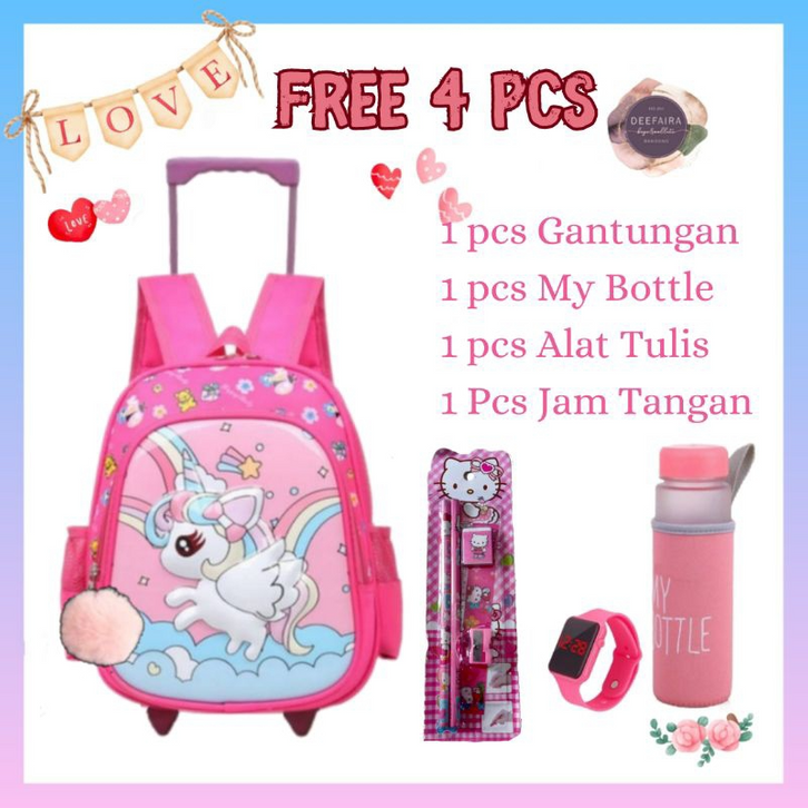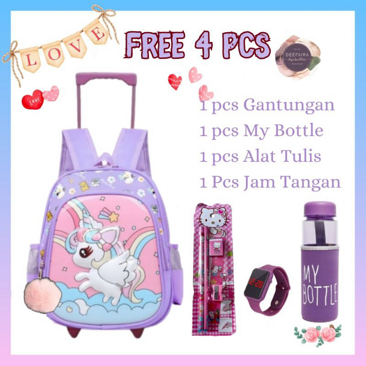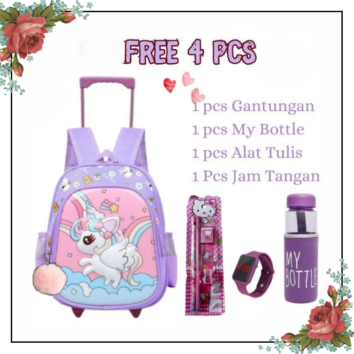 [TANPA DP] Tas Sekolah Anak Perempuan Little Pony Rainbow Free My Bottle TK SD SMP SMA Import Anti Air Alto Kuromi