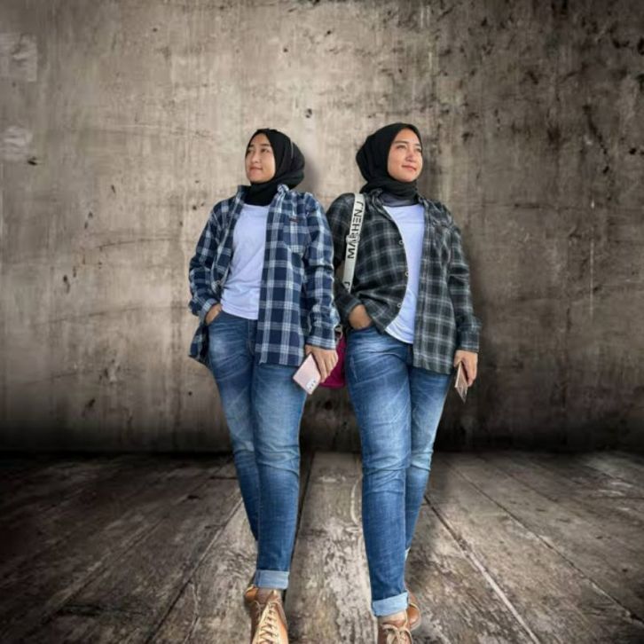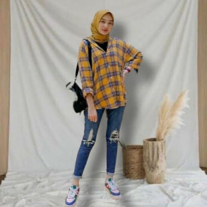 BAJU KEMEJA WANITA TERBARU - PROMO Kemeja Flanel Wanita Impor Kemeja Kotak Kotak Lengan Panjang Atasan Wanita
