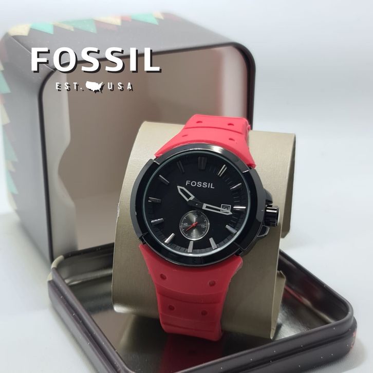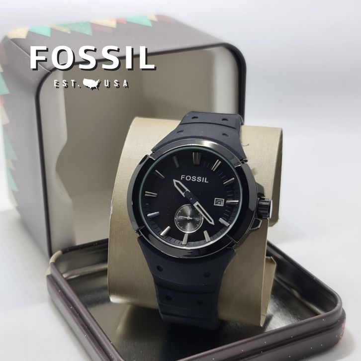 Jam Tangan Pria Fossil / Fossil Cowok Tanggal Aktif FS 1135 - Tali Rubber - Jam Tangan Murah