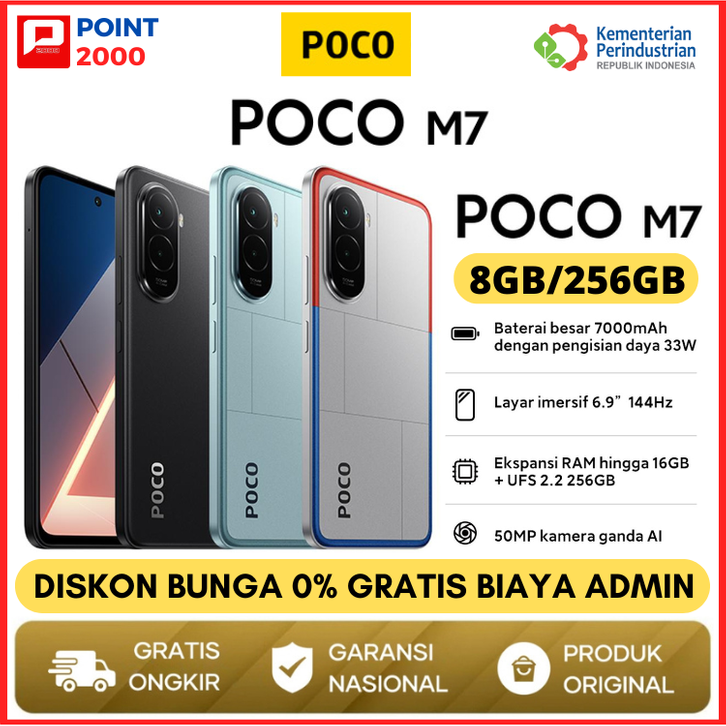 (Best Seller) POCO M7 (8GB/256GB) Baterai besar 7000mAh 33W | Layar imersif 6.9" 144Hz | Xiaomi Poco M7