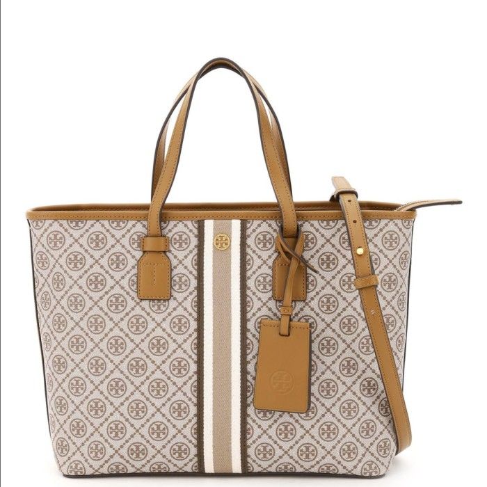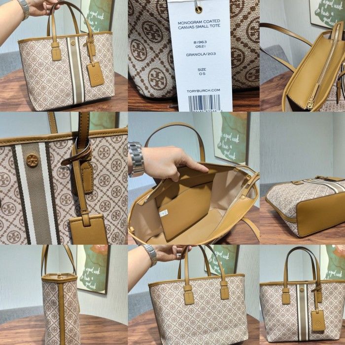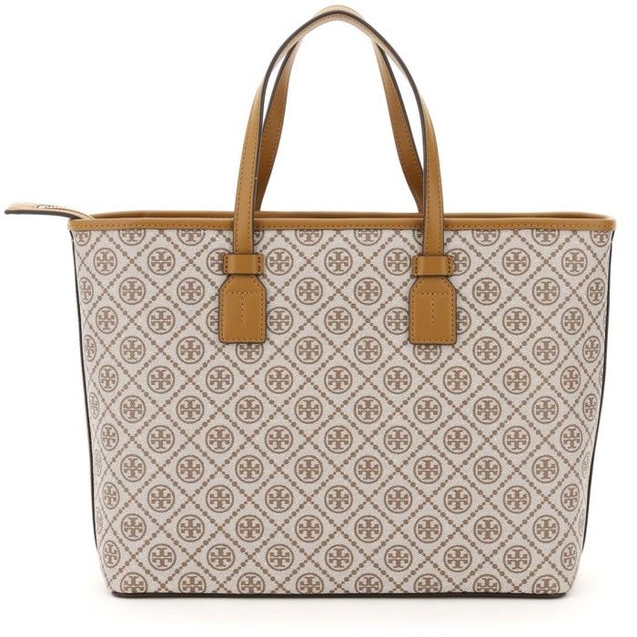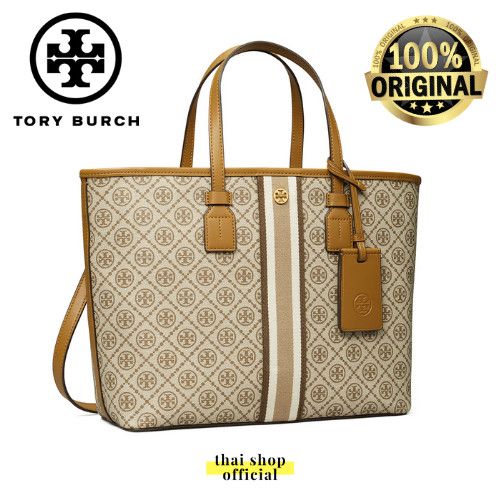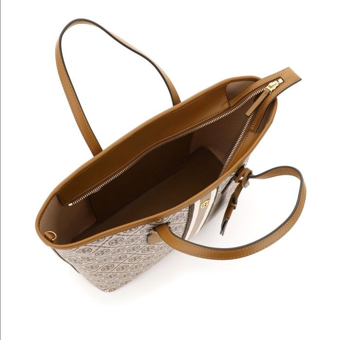(100% ORIGINAL) Tas TORY BURCH T Monogram Coated Canvas Tote Bag Brown