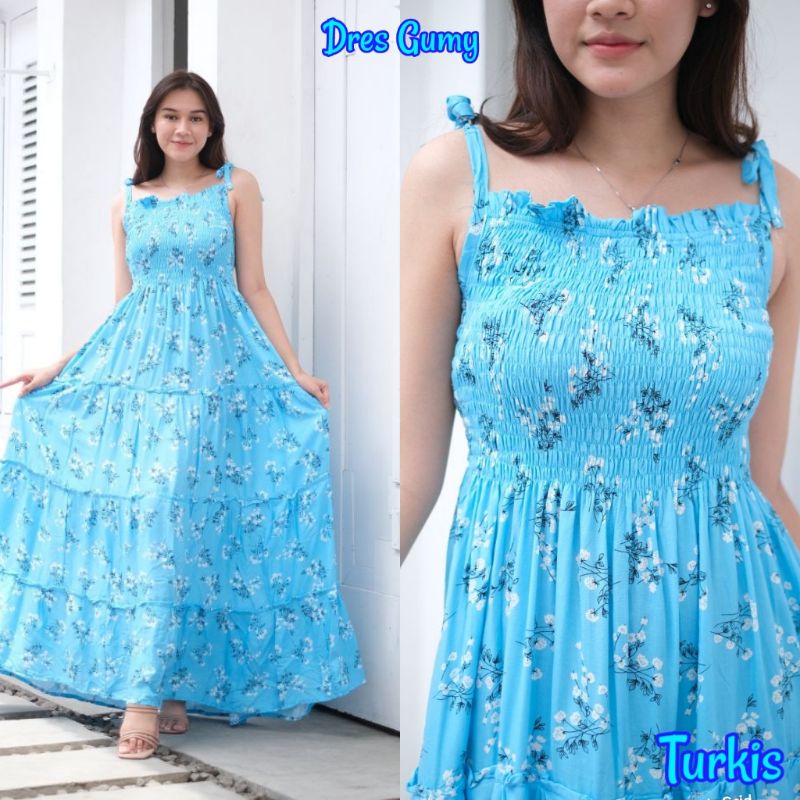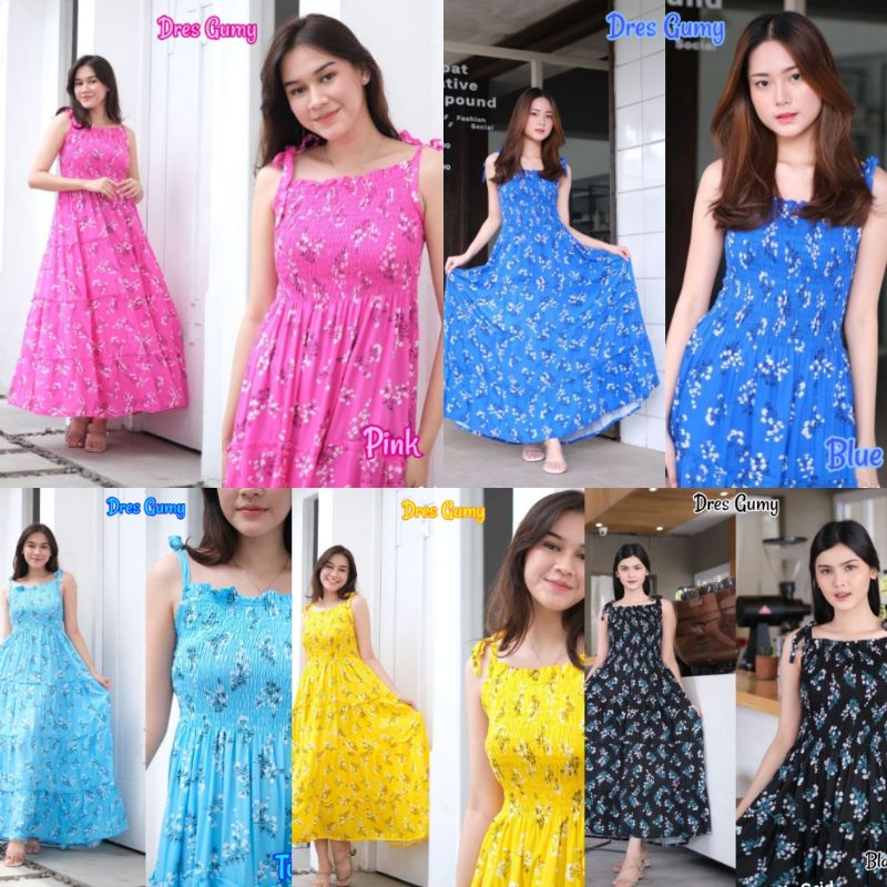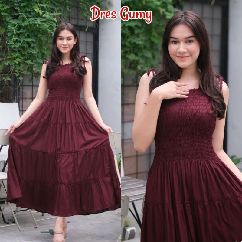 DRESS GUMI/ KOREAN DRESS/ DRESS GUMY/DRES TALI/ DRES SUSUN/GAUN PANJANG/ DRES GUMI POLOS