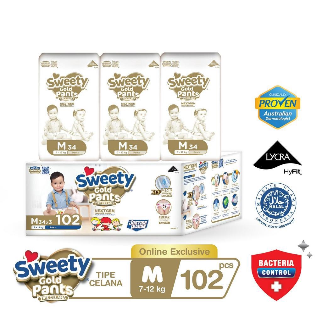 POPOK BAYI SWEETY GOLD PANTS NEXTGEN - M34 X 3 POPOK CELANA BAYI PAMPERS BAYI GRATIS ONGKIR