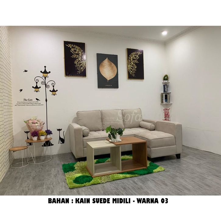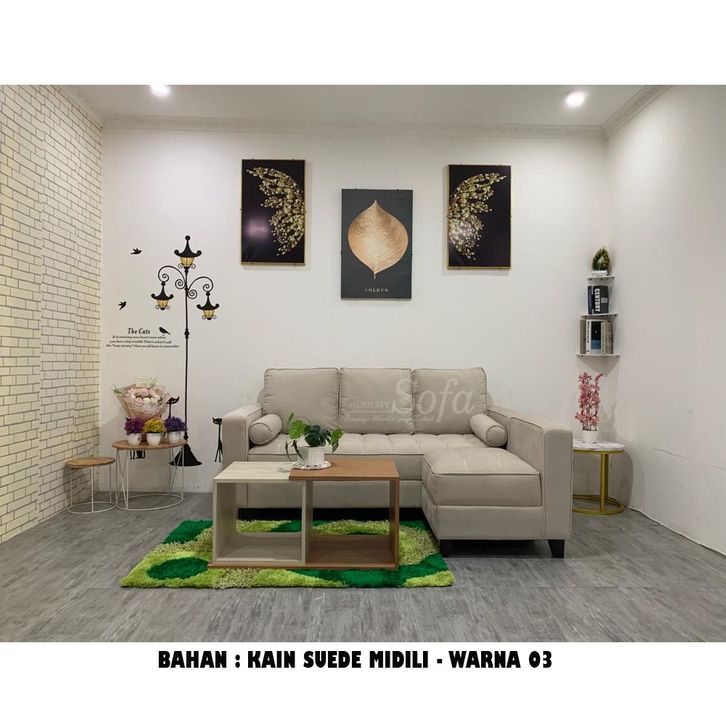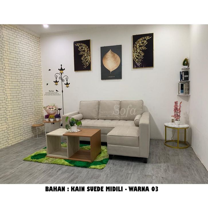 Sofa Ruang Tamu Modesty L 3 Seater Kapinis 10 + Meja Double Square