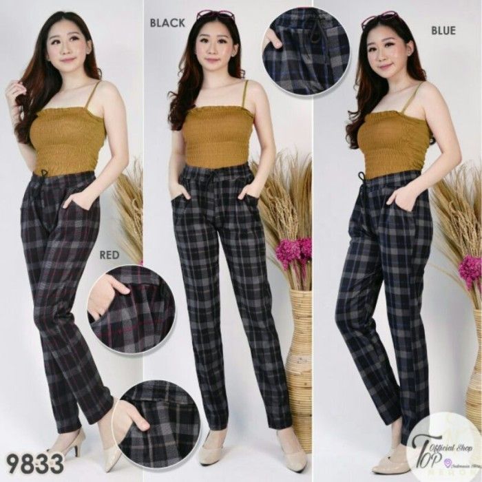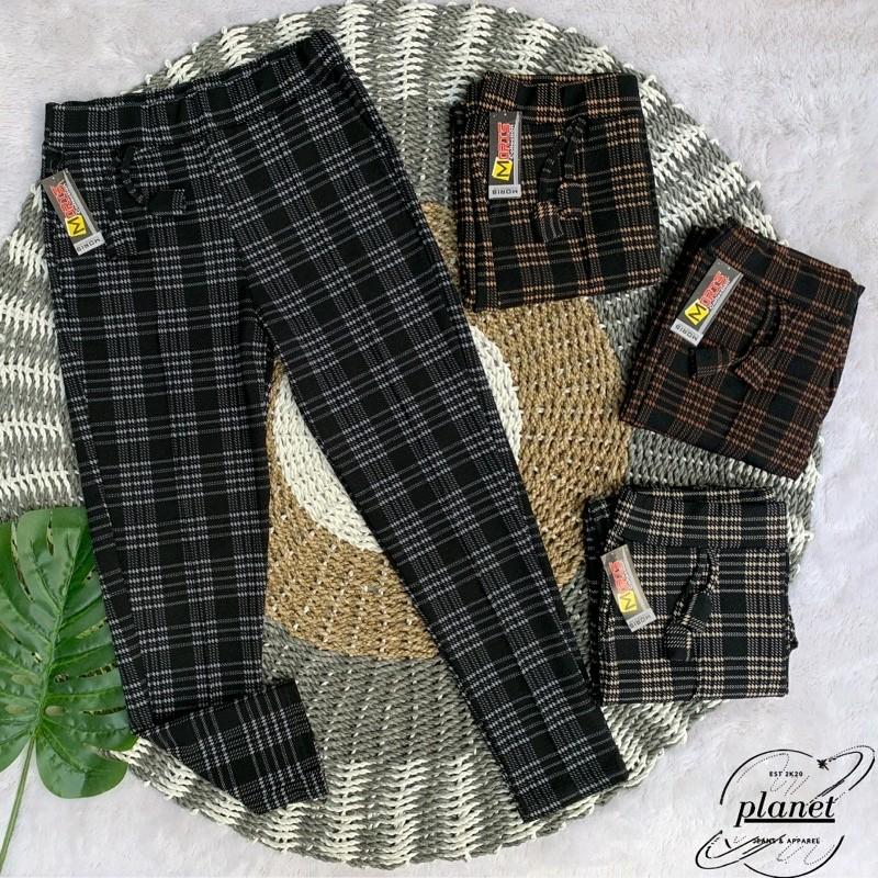 Celana scuba hitam/Celana Tartan/Celana Panjang motif kota/baggy pants scuba kotak kotak/Celana kerja kuliah