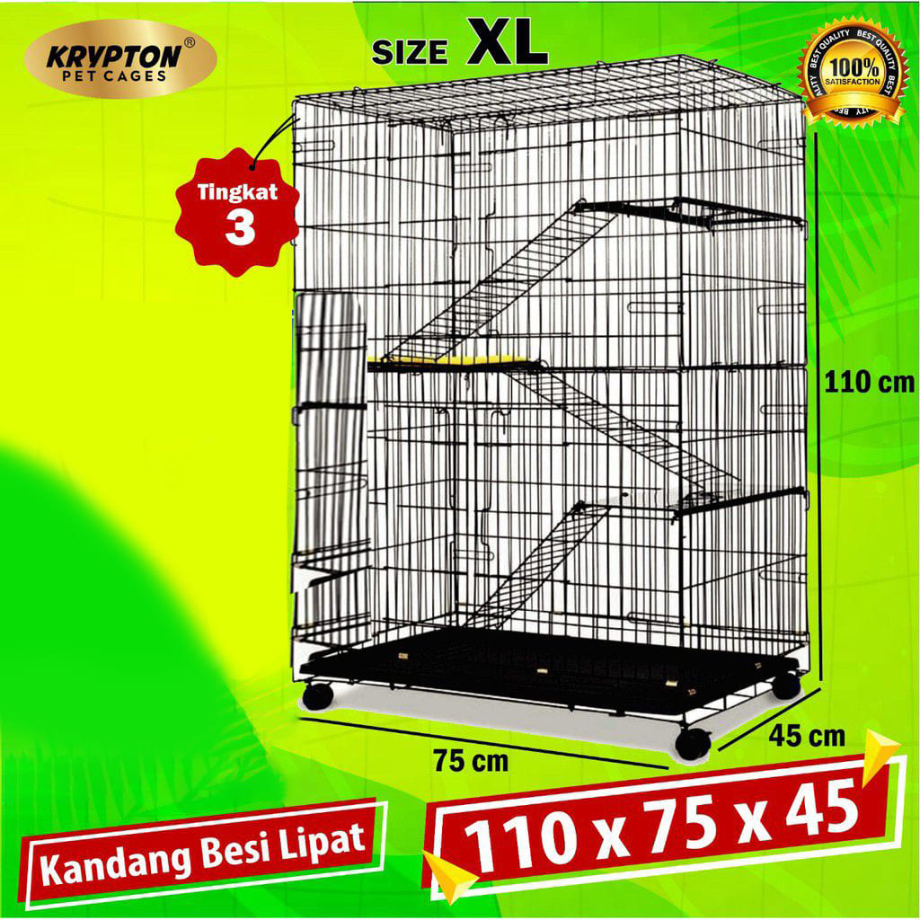 KANDANG KUCING SANGKAR KUCING KANDANG KUCING TINGKAT 3 JUMBO XL 110X75X45 + RODA UNTUK 5-6 EKOR KUCING DEWASA UMBARAN