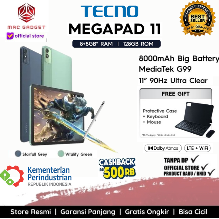 Official Store 🔥 TECNO MEGAPAD 11 - 16GB*/256GB, 11inch Ultra Screen, Eye Care Mode, Sim Card + T-Flash, 8000mAh, RESMI