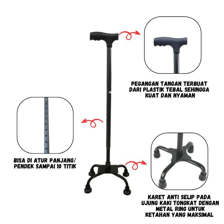 GRATIS ONGKIR!!! Tongkat Alat Bantu Jalan Lansia Orang Tua 4 Kaki 3 Kaki Walker 4 kaki