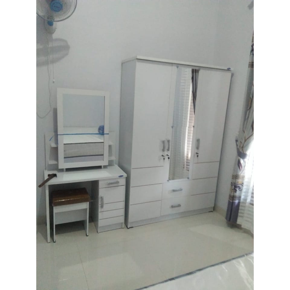 (PROMO) PAKET LEMARI 3 PINTU ROMARO LACI DAN MEJA RIAS WARNA PUTIH ROMARO TERLARIS CIREBON INDRAMAYU KUNINGAN MAJALENGKA