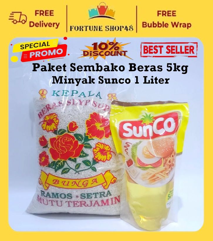 Paket Sembako Beras Setra Ramos 5kg Dan Minyak Sunco 1 Liter - GRATIS ONGKIR