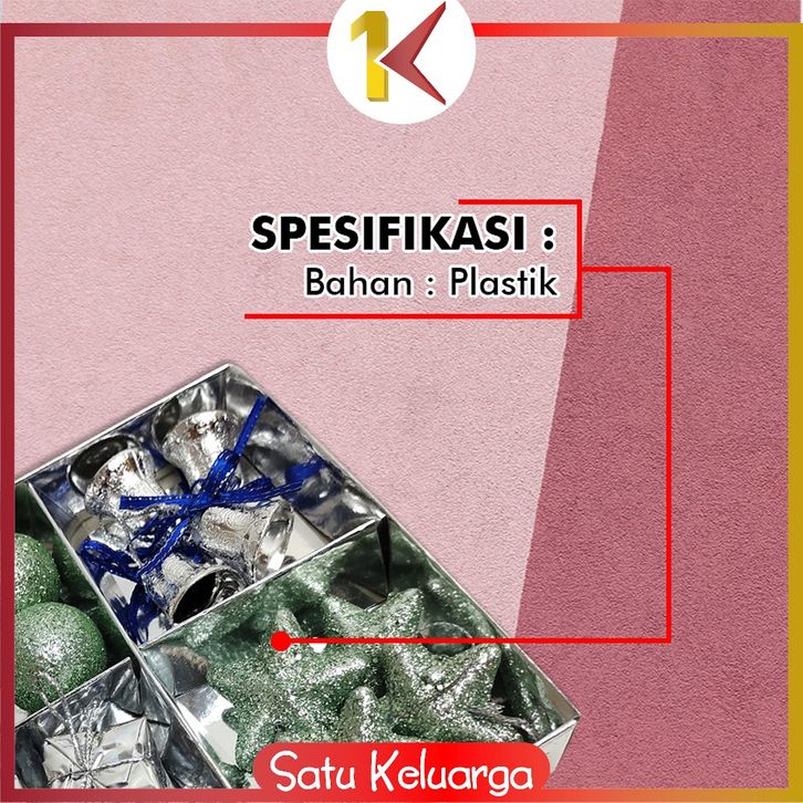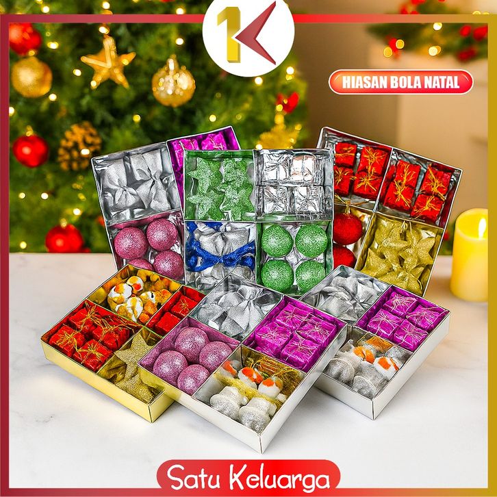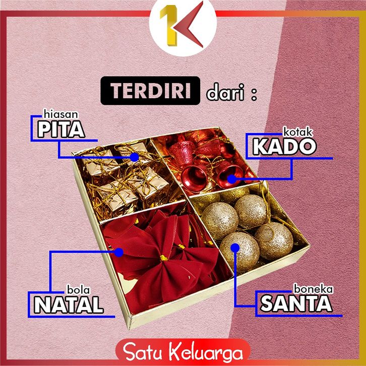 SK-C643 Hiasan Pohon Natal 4IN1 Kombinasi Paket Aksesoris Christmas / Gantungan Ornamen Bola Lonceng Pita Natal