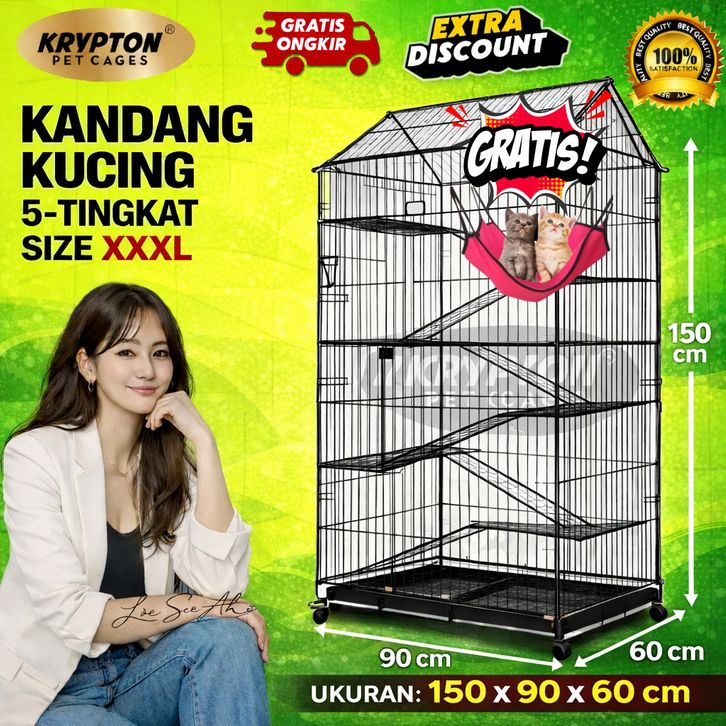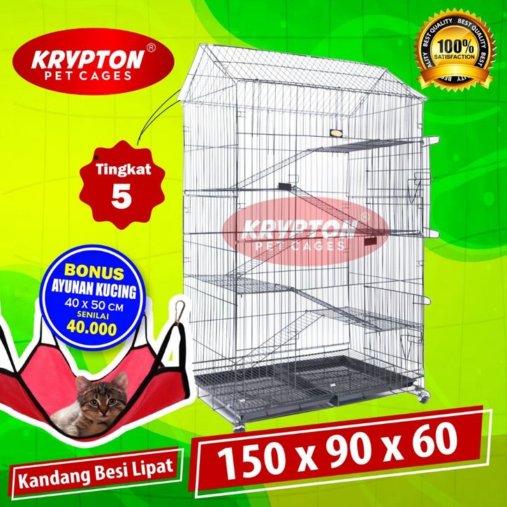 Kandang Kucing Tingkat 5 size 150x90x60 + RODA (bisa untuk 7-9 ekor kucing) - BERAT 15KG