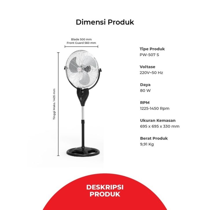 PROMO MASPION PW-507 S Stand Fan Besi / Kipas Angin Berdiri 20 Inci Garansi Resmi maspion - Kita Tanpa DP DP0 WARU