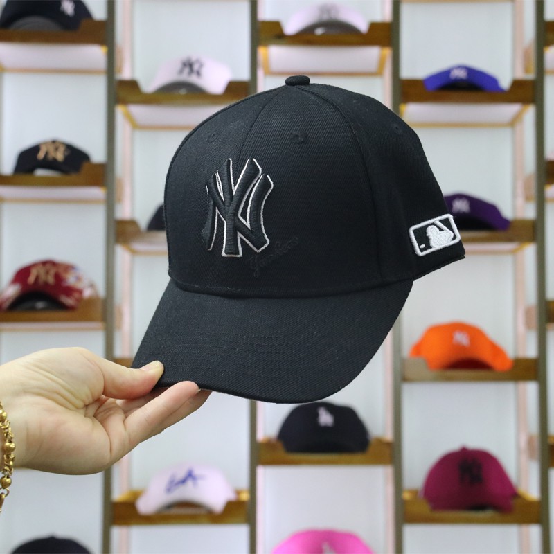 TOPI MLB KOREA NY HITAM LIST PUTIH BLACK WHITE BASEBALL CAP IMPORT