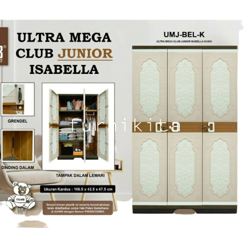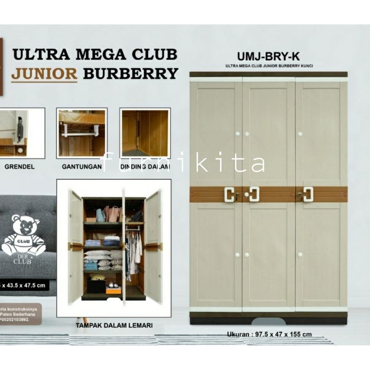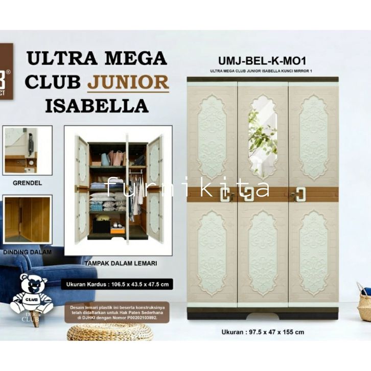 FREE ONGKIR LEMARI PAKAIAN PLASTIK ULTRA MEGA JUNIOR KACA FULL KUNCI CLUB 3 PINTU GANTUNG JUMBO LEMARI PLASTIK TANPA DP
