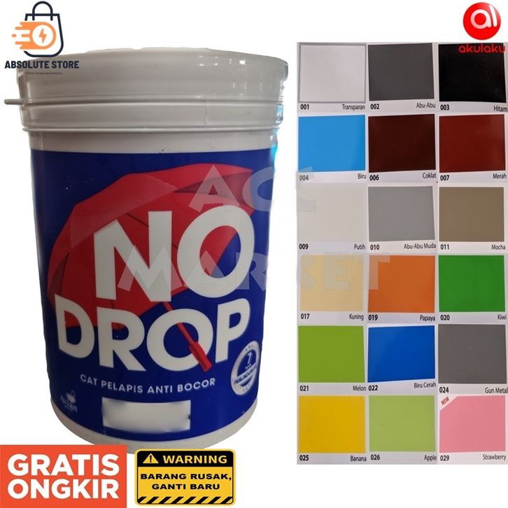 002 ABU ABU, 025 BANANA, 022 BIRU CERAH, 006 COKLAT, 020 HIJAU KIWI, 007 MERAH, 019 PAPAYA, 009 PUTIH, 001 TRANSPARAN, 029 PINK STRAWBERRY, 010 ABU MUDA, 011 MOCHA, 004 BIRU, 017 KUNING, 021 MELON, 003 HITAM, 024 GUN METAL, 026 APPLE, No Drop Membrane Serat Pelapis Anti Bocor Fiber, 031 SANDSTONE, 032 LAKESTONE, 033 ABU VULKANIK, 034 GUAVA, 035 CHAMPAGNE, 036 BIRU LAUT