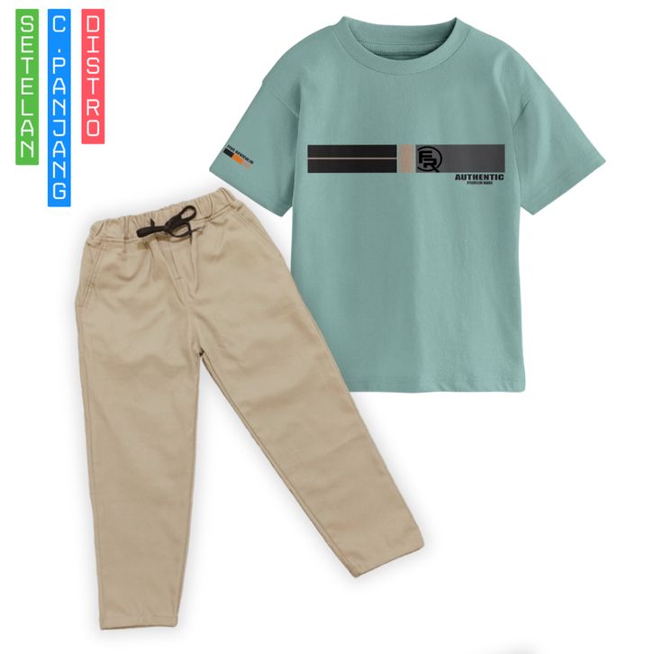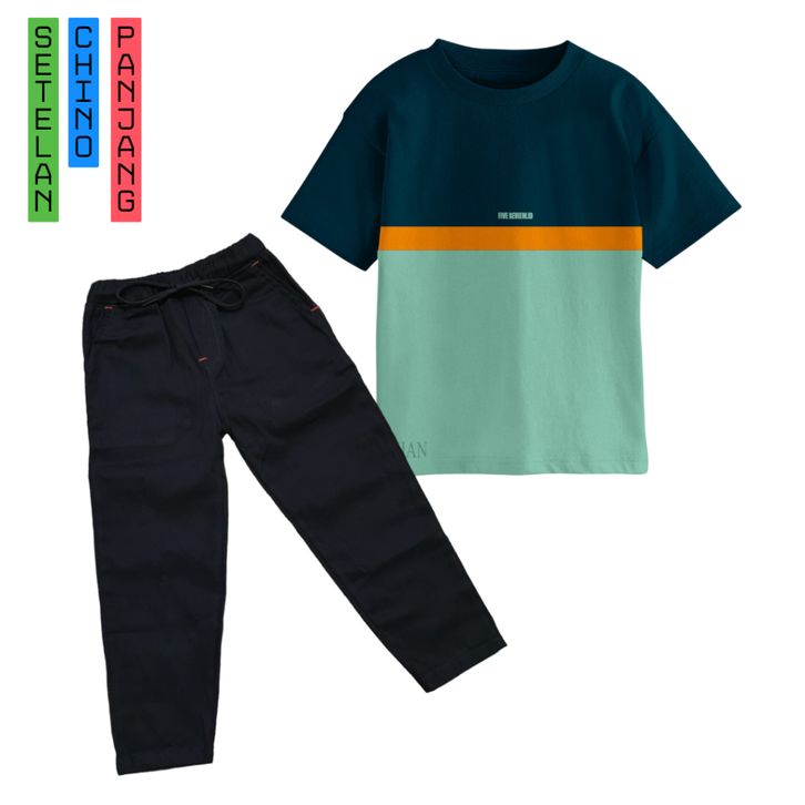 Setelan kaos anak laki laki celana chino panjang bahan katun streath anak cowok 3 4 5 6 7 8 9 10 11 12 tahun terbaru
