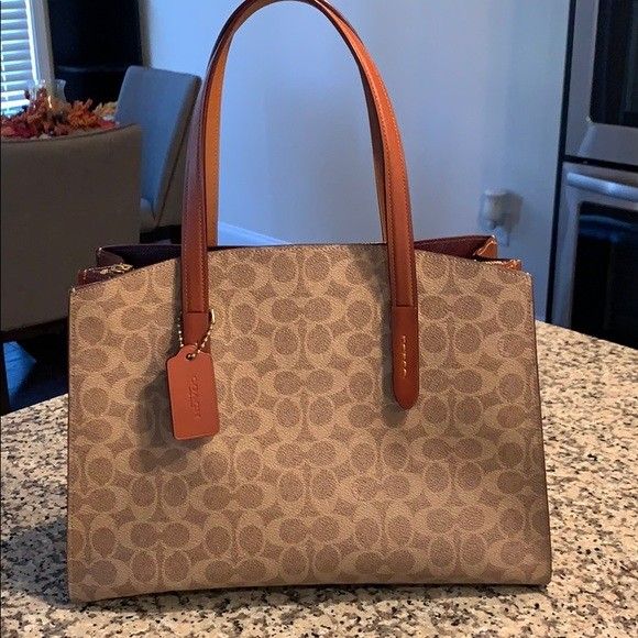 (100% ORIGINAL) Tas COACH Charlie Satchel Carryall 28 Brown Signature
