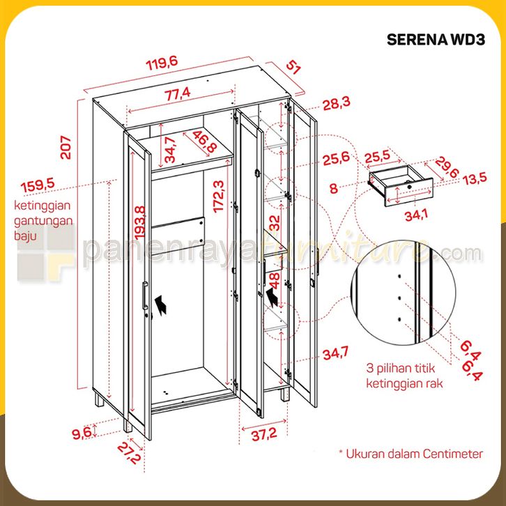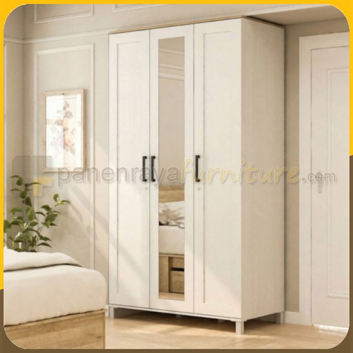 Lemari Pakaian 3 Pintu Cermin Panjang Prodesign Serena WD3 Putih 120x51x207 cm