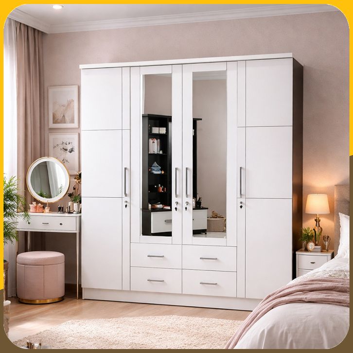 PanenRaya Lemari Pakaian 4 Pintu Putih BW010 Graver LP BW 010 White Glossy 160x43x183