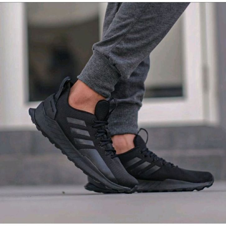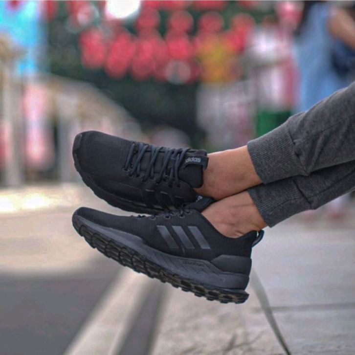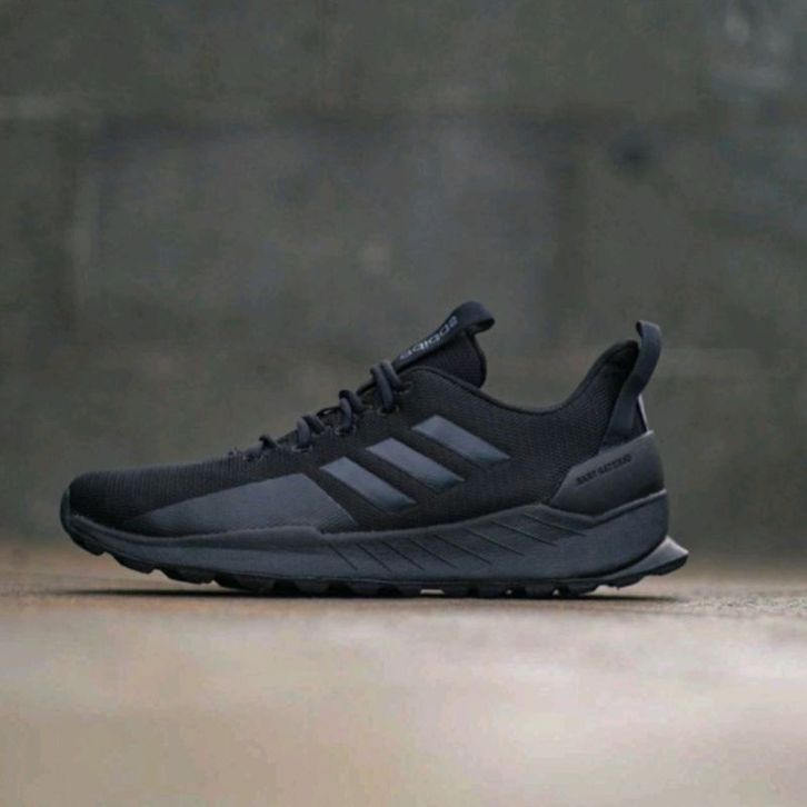 Sepatu Pria Sneaker Running Casual Adidas Questar Trail Full Black Original Free Kaos Kaki Sepatu Sekolah