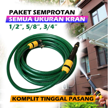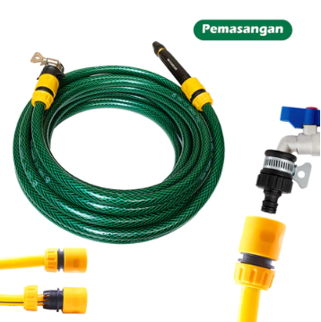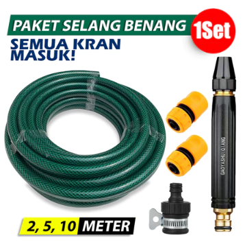 Selang Semprotan Air Semprot Cuci Motor Mobil Siram Taman Benang Hijau Komplit ( 2,5,10 Meter ) Anti Lumut 2mm - Paket