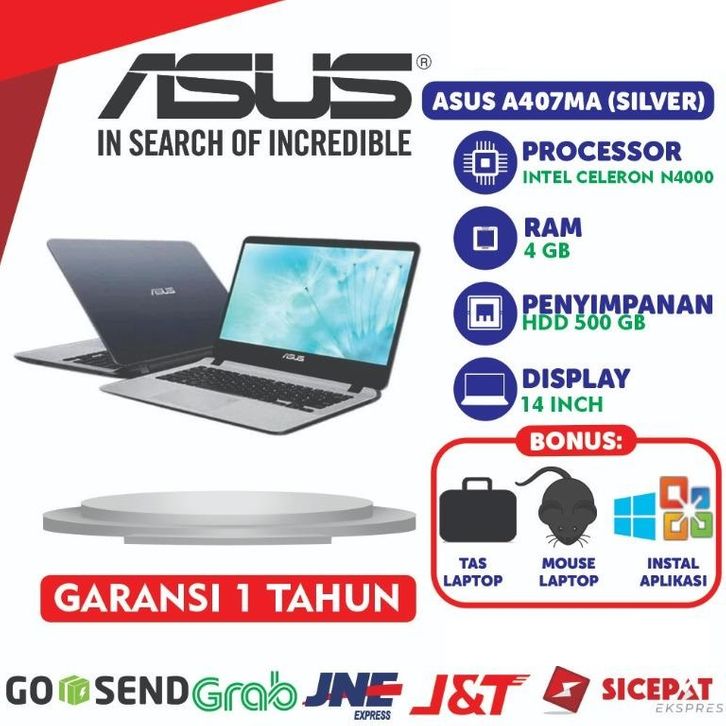 BEST SELLER !! Laptop Asus A407MA A407 N4000/4GB/512GB SSD/14 inch // Fingerprint Win10 // FREE MOUSE/TAS