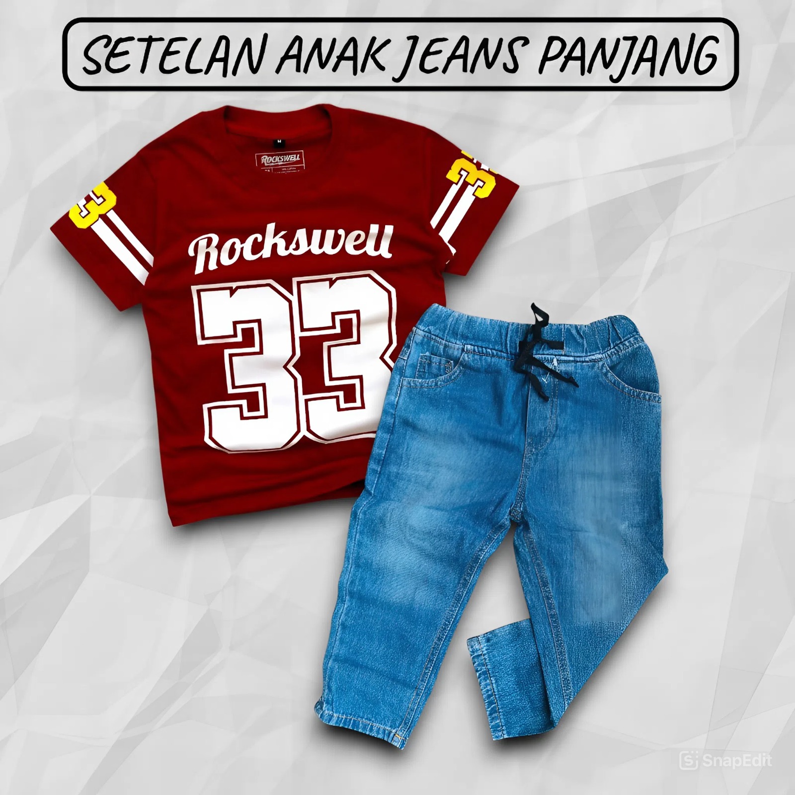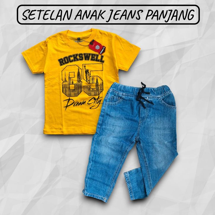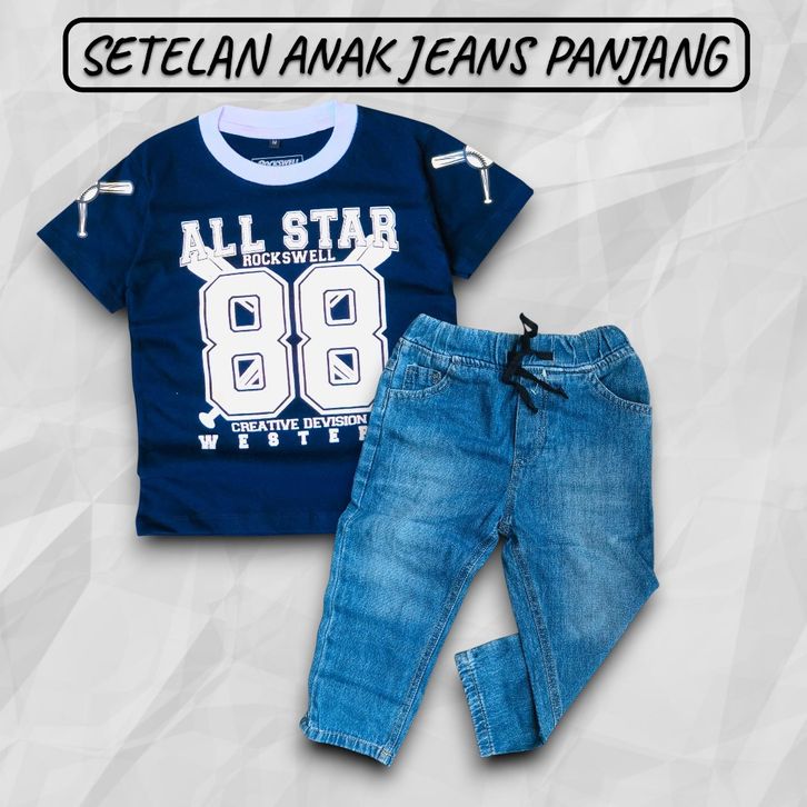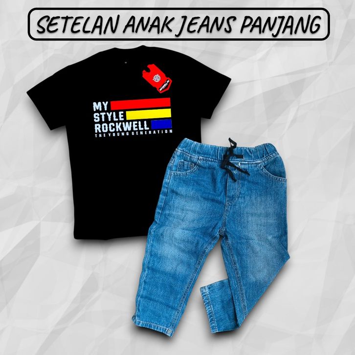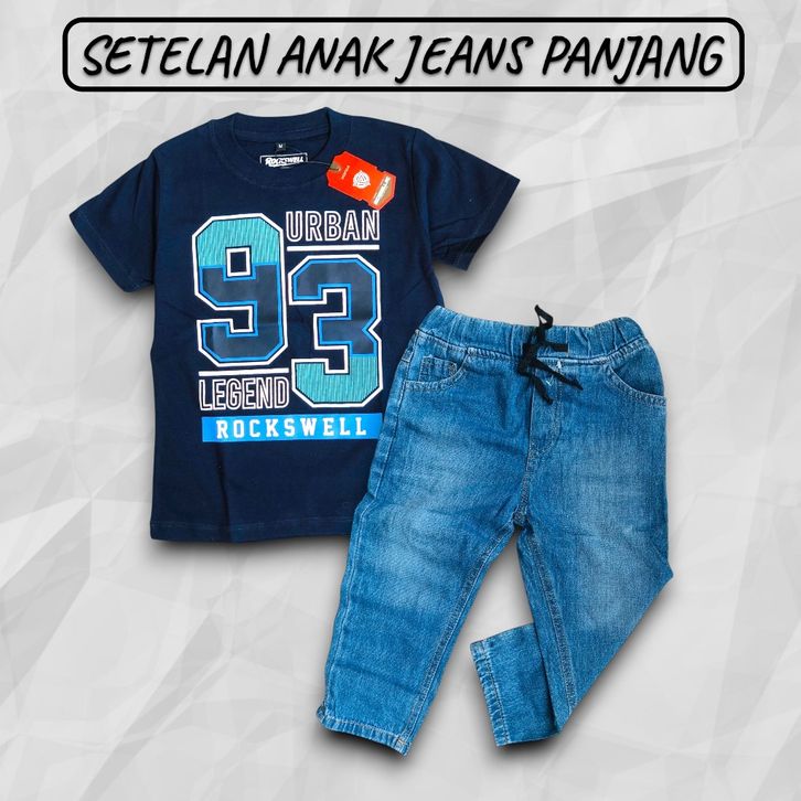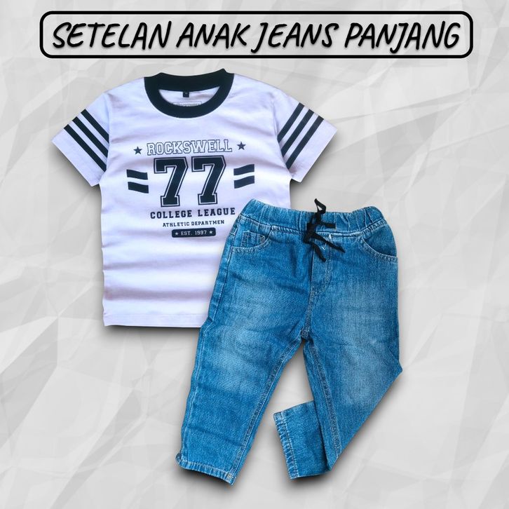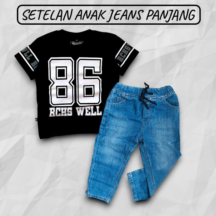 Baju Lebaran Setelan Anak Laki Laki Kaos Distro & Celana Jeans Panjang Strecy Usia 4-12 Tahun Bahan Premium Terbaru 2026