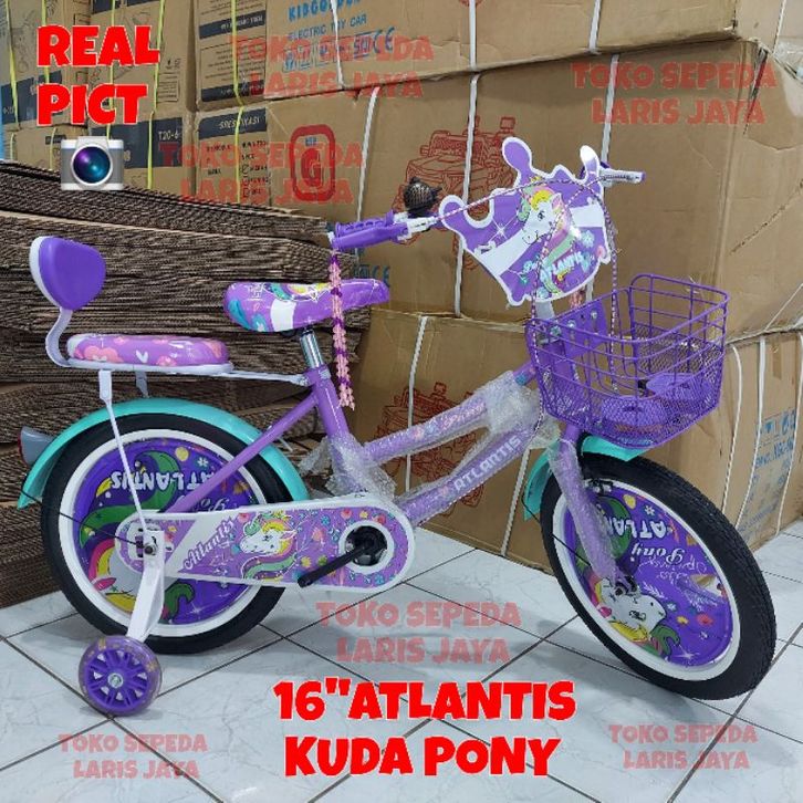 SEPEDA ANAK PEREMPUAN16 inch, sepeda anak keranjang ukuran 16 inch sepeda anak atlantis kuda pony , Sepeda mini 16 atlan