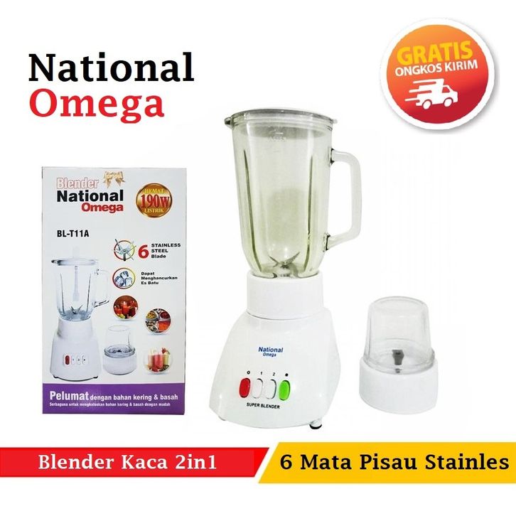 (BEBAS ONGKIR) Blender National Omega BL-T11A 2in1 NT Quality Blender Kaca 6 Mata Pisau TERBARU TERMURAH TERLARIS