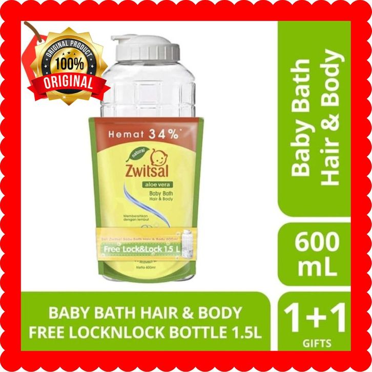 (GRATIS BOTOL) ZWITSAL Baby Bath Hair And Body Aloe Vera 2 In 1 600ml free Lock & Lock 1.5L