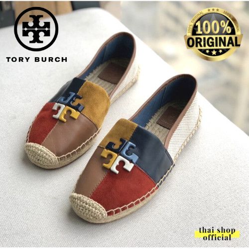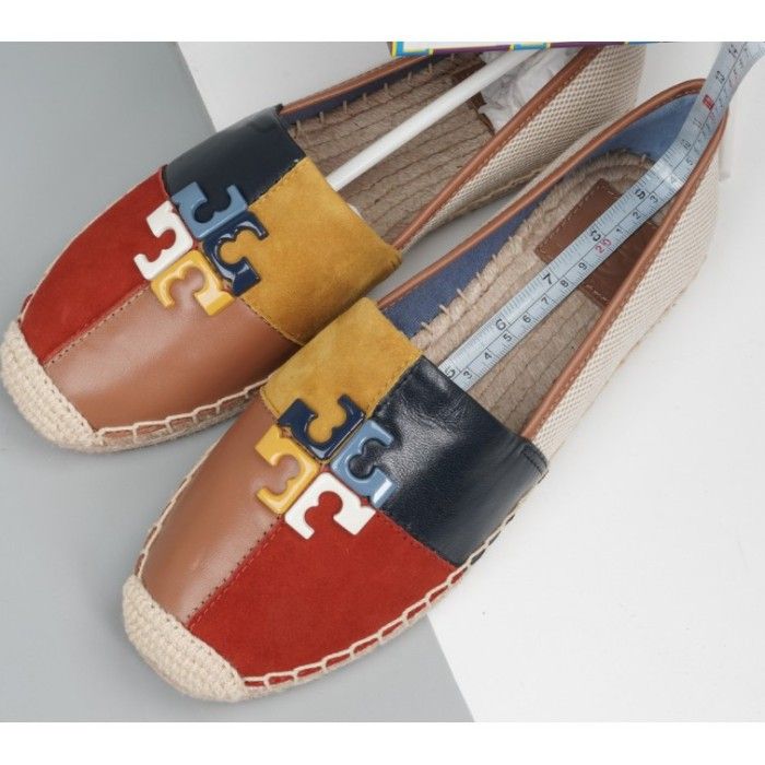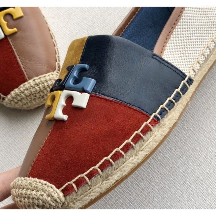 (100% ORIGINAL) TB TORY BURCH Shoes Logo Patchwork Flat Espadrilles