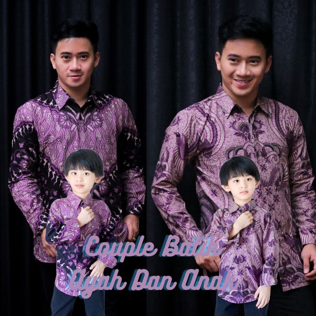 KEMEJA BATIK ANAK LAKI-LAKI LENGAN PANJANG COUPLE AYAH DAN ANAK COWOK WARNA UNGU LILAC HIGH QUALITY 2024